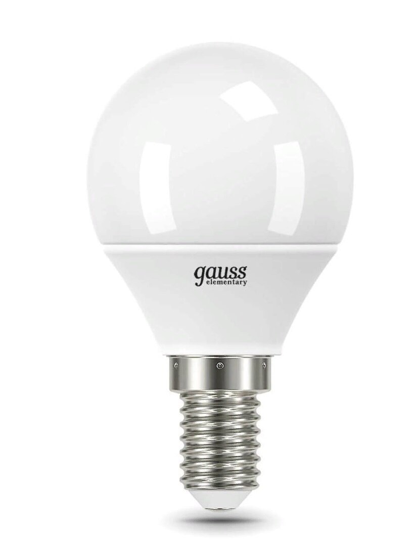 Купить Gauss Elementary Шар G45 E14 6W(420lm) 3000K 82x45 матовая, пластик/алюм. 53116, Лампа светодиодная