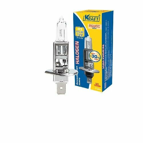 Лампа автомобильная галогенная KRAFT H1 12v 55w (P14,5s) +30% KT 700065 P14,5s 3200K 1 шт.