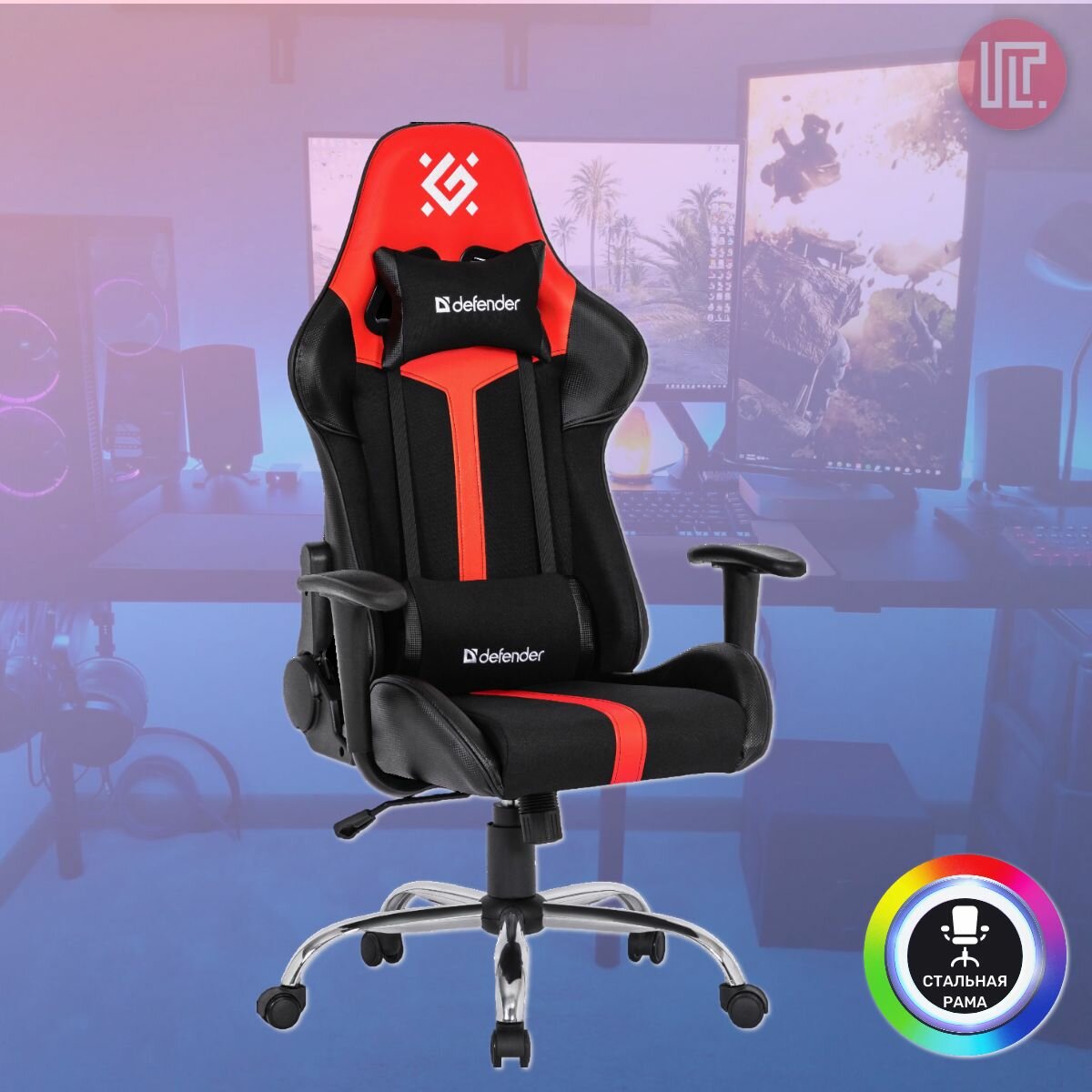 Компьютерное игровое кресло Defender Racer 64374 черный, красный
