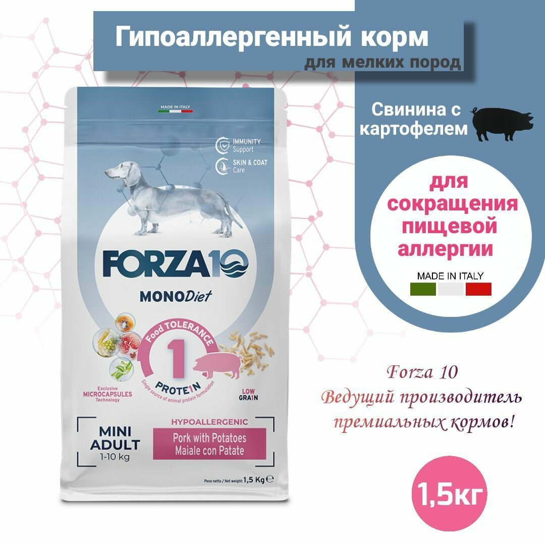 FORZA10 DOG MINI MONODIET LOW GRAIN монобелковый для взрослых собак маленьких пород при аллергии со свининой и картофелем (1,5 кг)