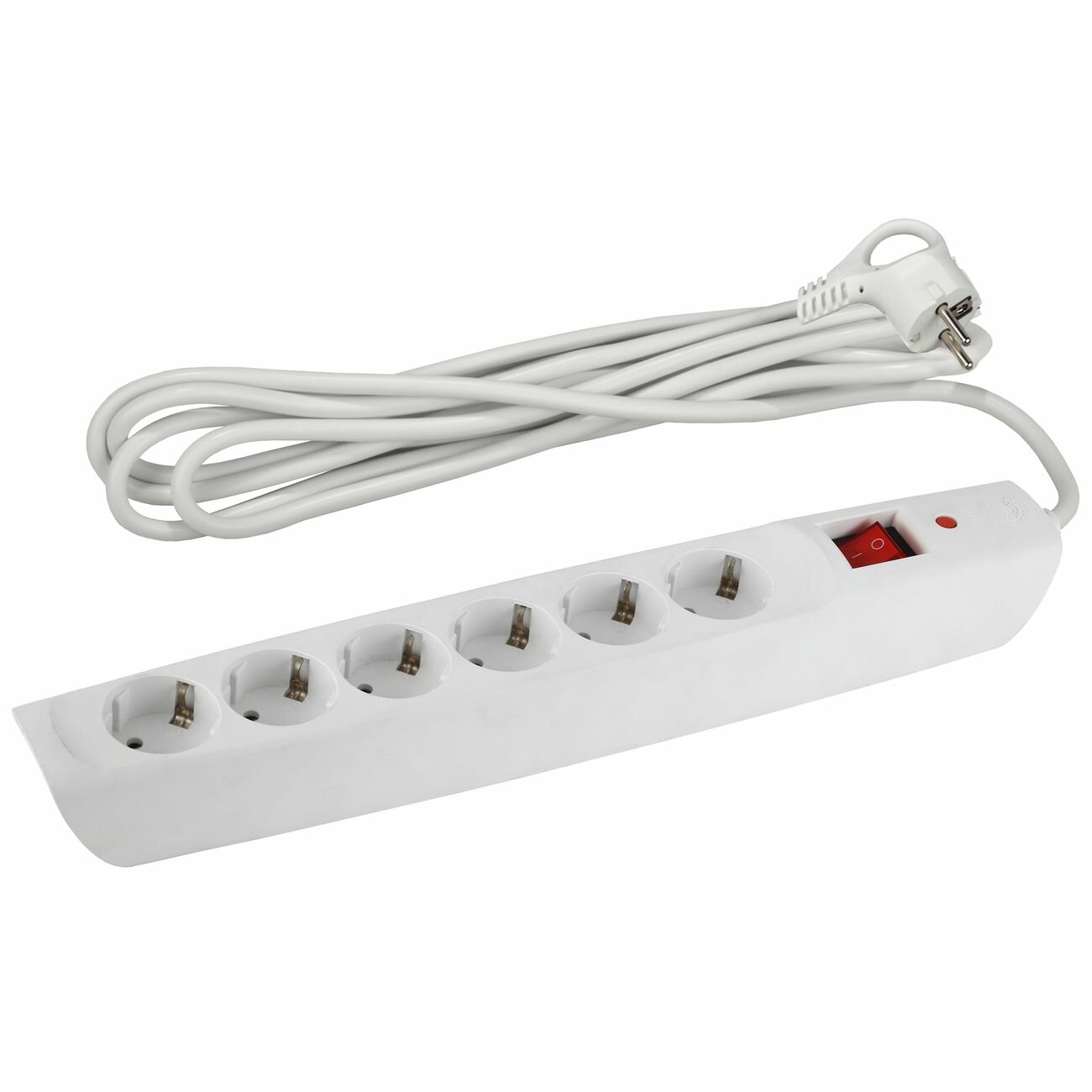 Сетевой фильтр ЭРА SFX-6es-2m-W с заземлением с защитой с выключ 6 розеток 2 м белый