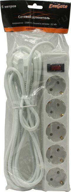 Удлинитель ExeGate EC-5-5W 5 Sockets 5m White EX279359RUS