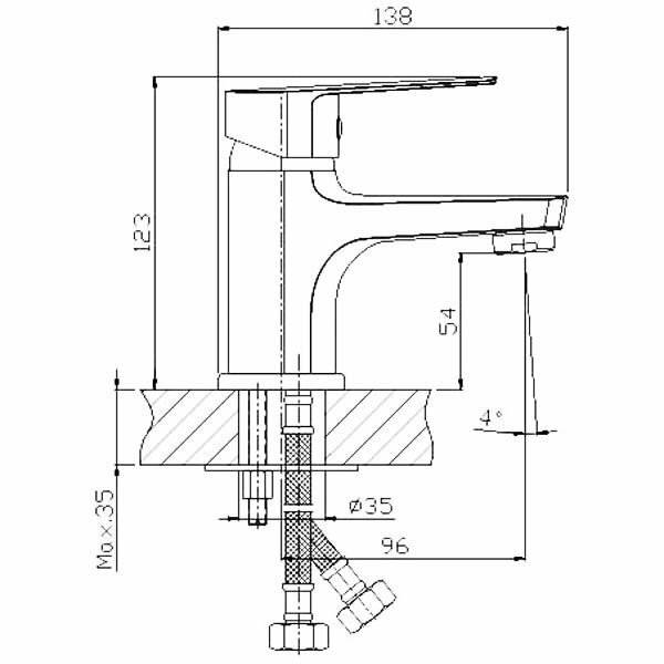 Смеситель одноручный (35мм) для умывальника монолитный, хром S35-11