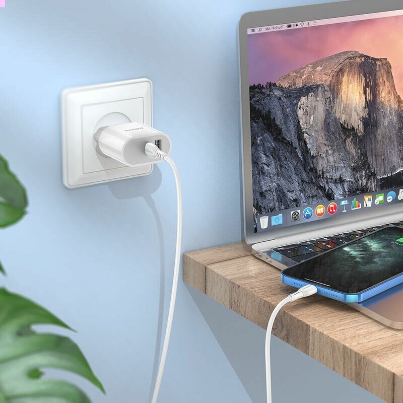 Зарядное устройство Borofone BA62A Wiseacre, белый (1xUSB, 1xUSB-C, 2.4A)