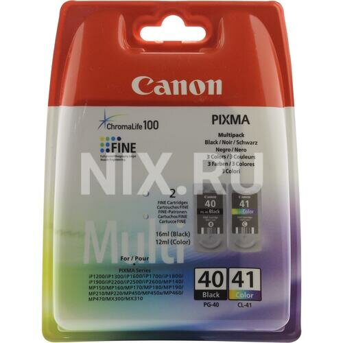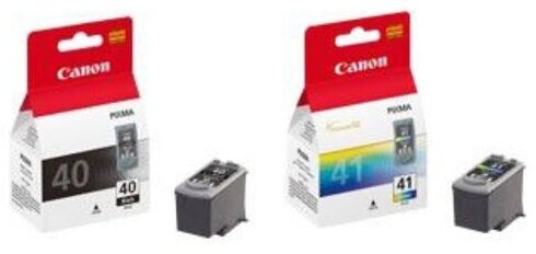 Комплект картриджей оригинальный Canon PG-40 (Black) и Canon PG-41 (Color), объем: черный 16 мл, цветной 12 мл.