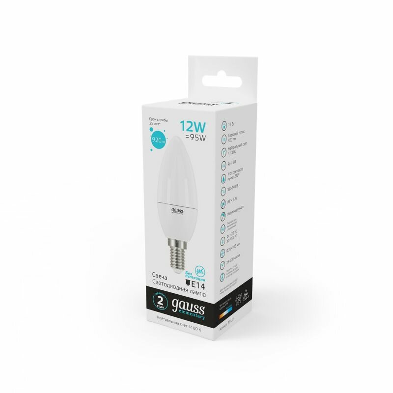 Лампа светодиодная Gauss Elementary 12Вт Е14 свеча 4100K свет нейтральный белый интересное: