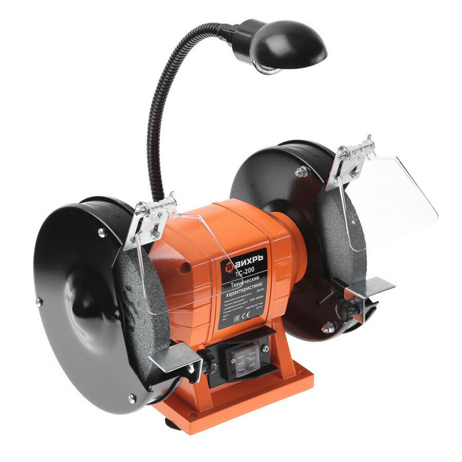 Точило Вихрь, ТС-400, 400 Вт, 2950 об/мин, 200х20 мм, посадочный диаметр 12.7 мм, фонарь
