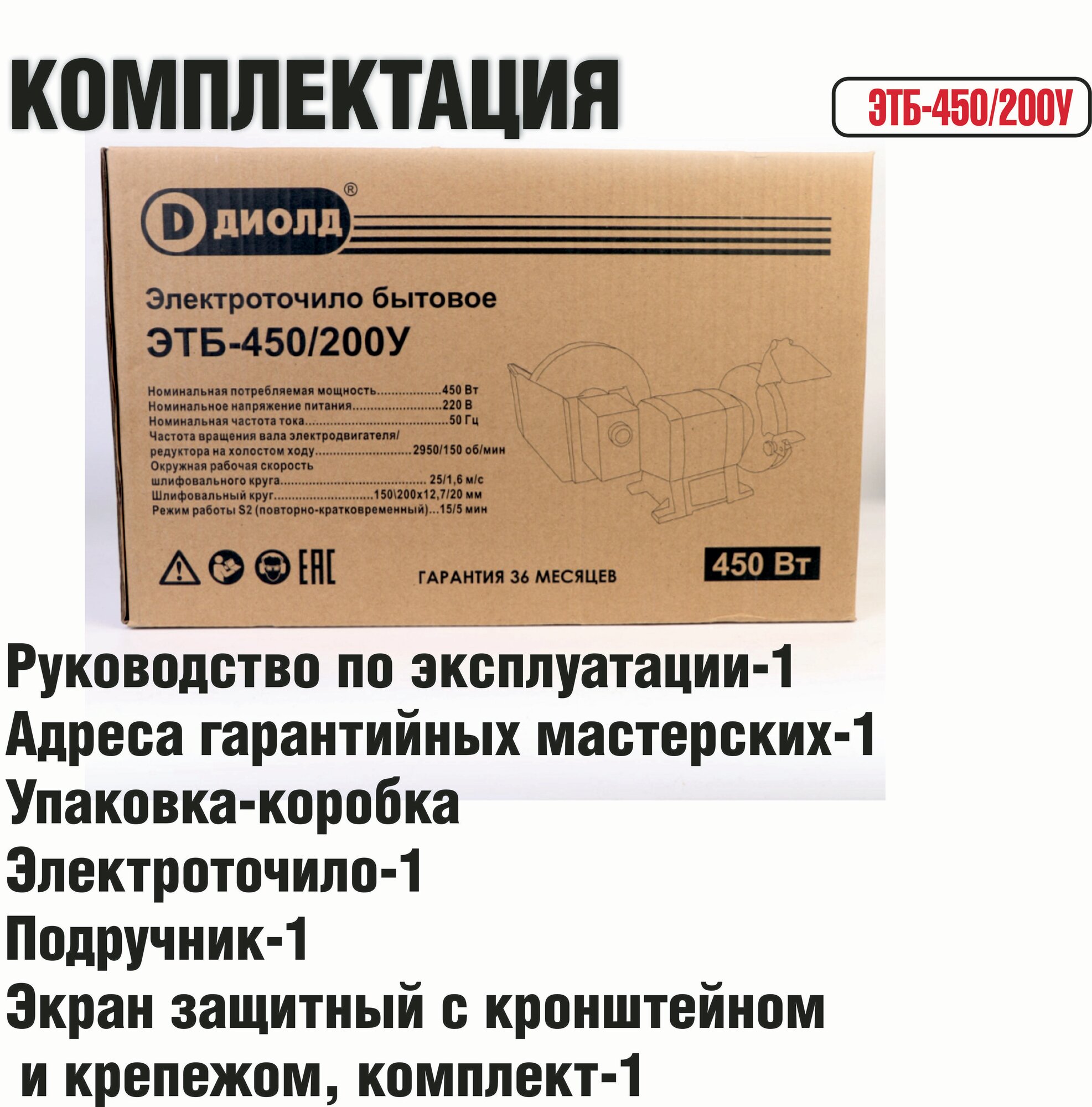 Электроточило диолд ЭТБ-450/200 У / точильный станок, 450 Вт, 2950 об/мин