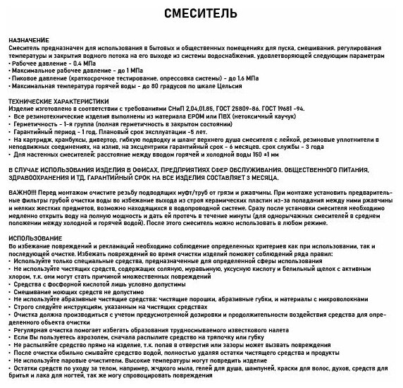 | Длина излива | 350 мм |
