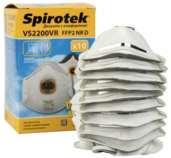 Респиратор-полумаска 10 шт. фильтрующая SPIROTEK (спиротек) VS2200VR с клапаном выдоха, FFP2 интересное: