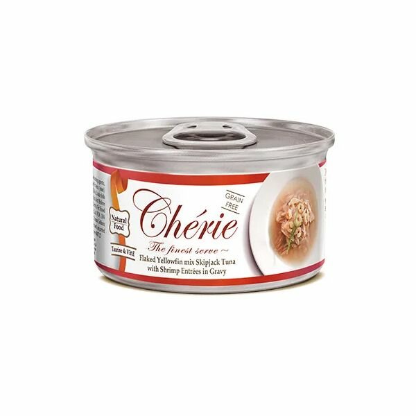 Купить Консервы для кошек Pettric Cherie тунец С креветкой В подливе Flaked Yellowfin mix Skipjack Tuna with Shrimp Entrees in Gravy 80 гр