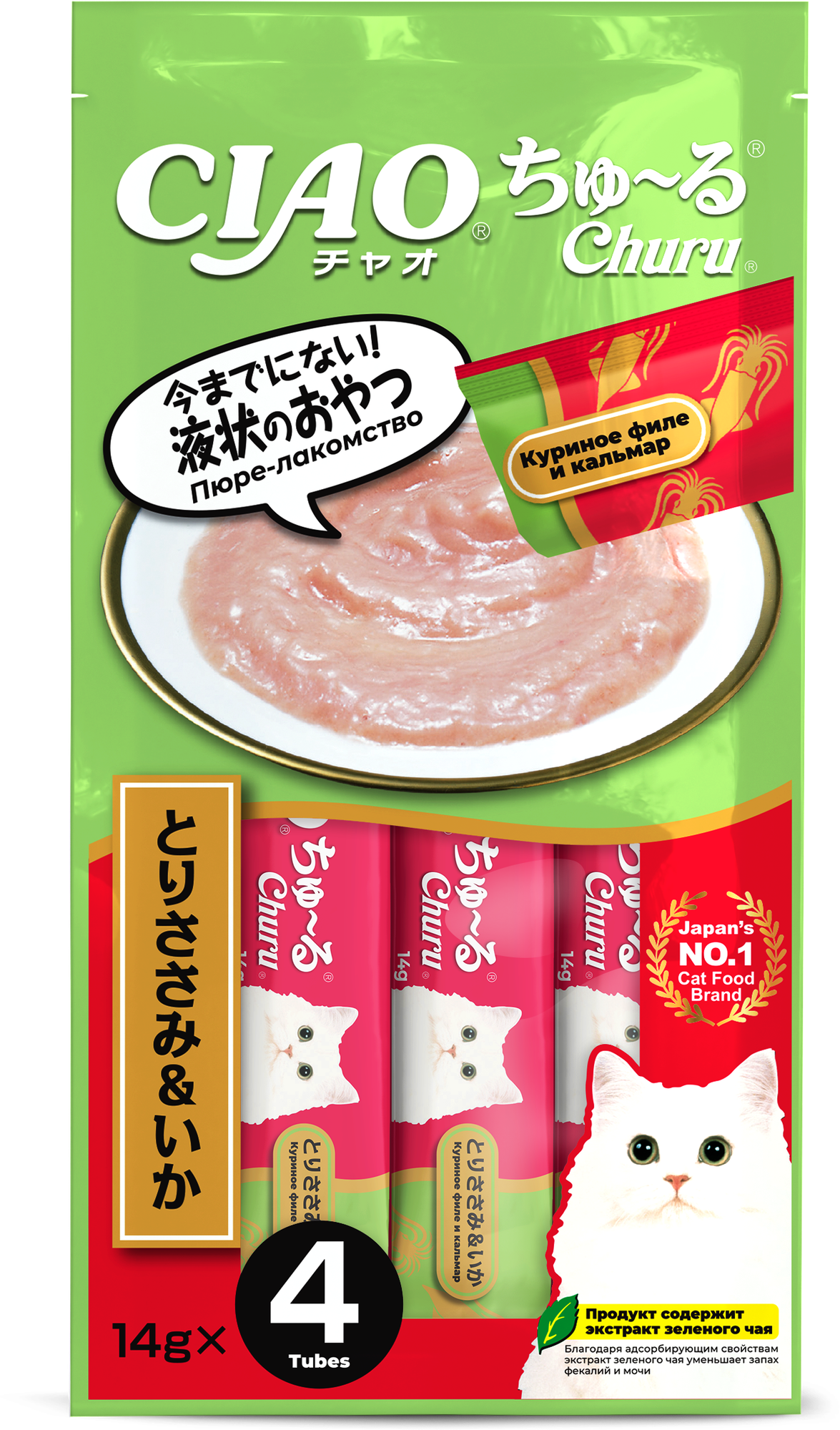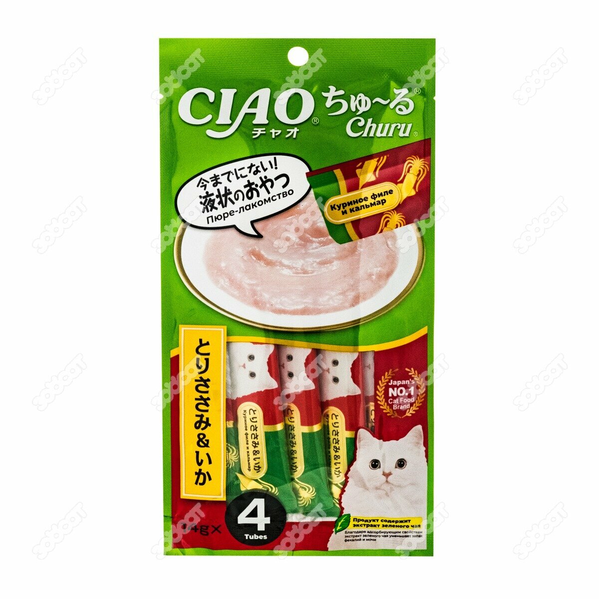 Inaba Ciao Churu лакомство-пюре для взрослых кошек с куриным филе и кальмаром - 14 г х 4 шт 4901133947292