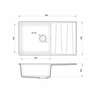 Мойка кухонная GranFest LEVEL GF-LV-860L чаш+кр 860*500мм черный, мрамор