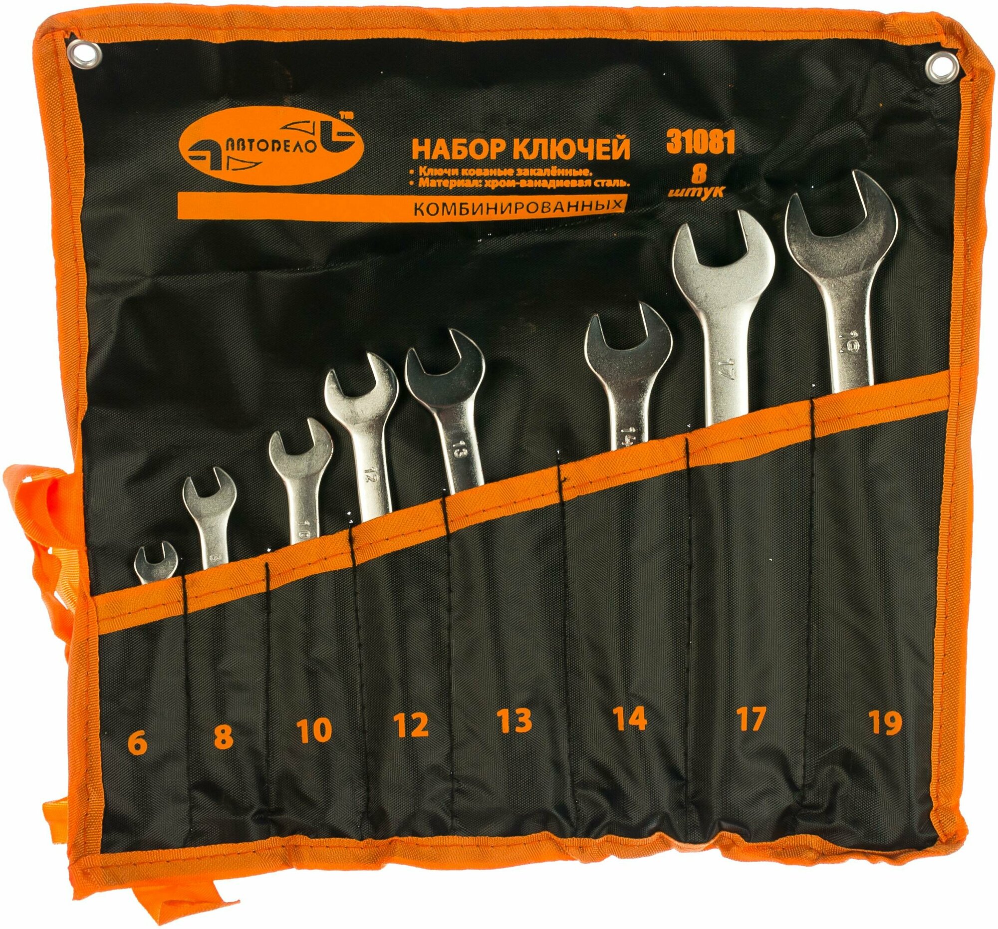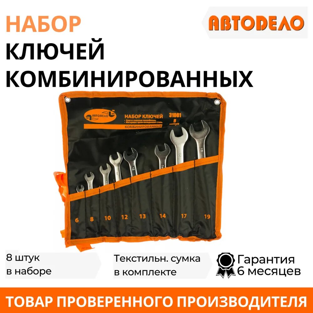 Набор ключей комбинированных, ключи гаечные, 8 шт. 6-19мм. "АвтоДело", рожковые/накидные, сумка, 31081