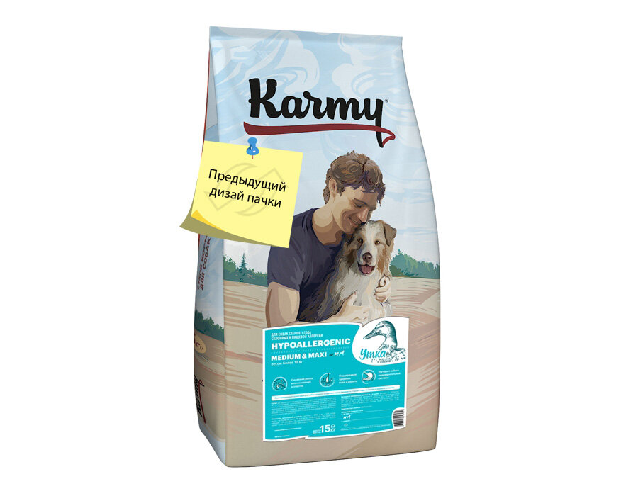 Корм Karmy Medium & Maxi Hypoallergenic для собак средних и крупных пород, склонных к пищевой аллергии, с уткой, 14 кг