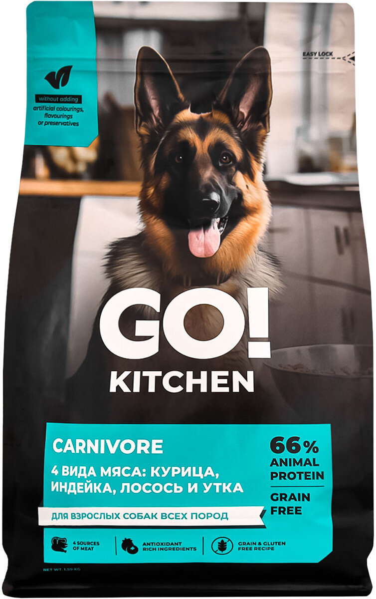 Корм GO! KITCHEN / Полнорационный беззерновой сухой корм для взрослых собак всех пород с курицей, индейкой, лососем и уткой / 5,44 кг