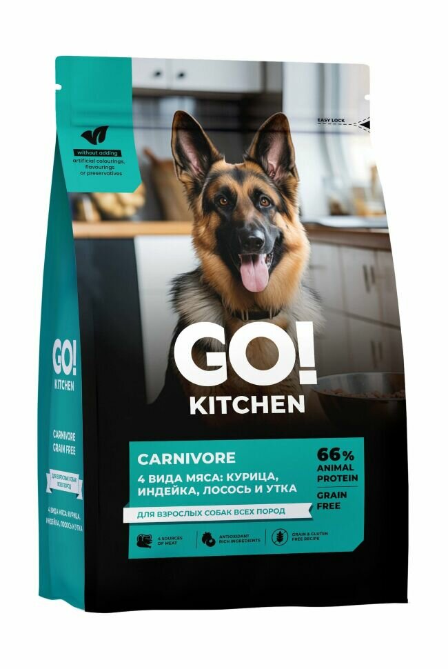 СохранитьGO! KITCHEN Solutions 4 вида мяса: курица, индейка, лосось и утка, полнорационный беззерновой сухой корм для взрослых собак всех пород с курицей, индейкой, лососем и уткой (5.44 кг) интересное: