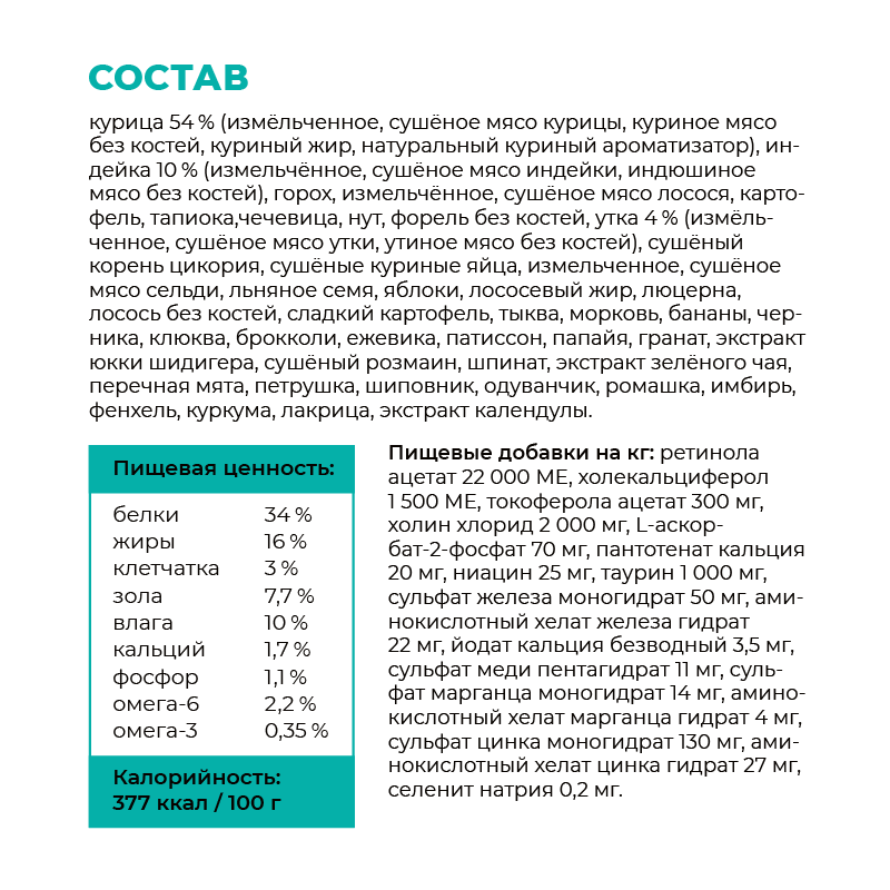 | Особые потребности | беззерновой |