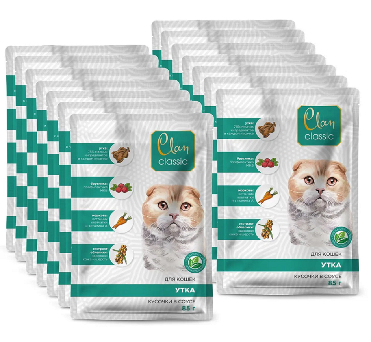 Clan Classic паучи для кошек с уткой, брусникой и морковью, в соусе - 85 г x 14 шт интересное: