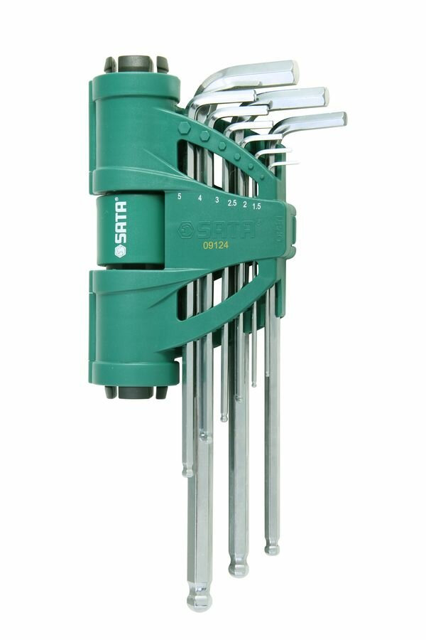 SATA 09124 Шестигранники в наборе 9 ук. Уговые удинённые со сфероидным концом и держатеем. (SATA) интересное: