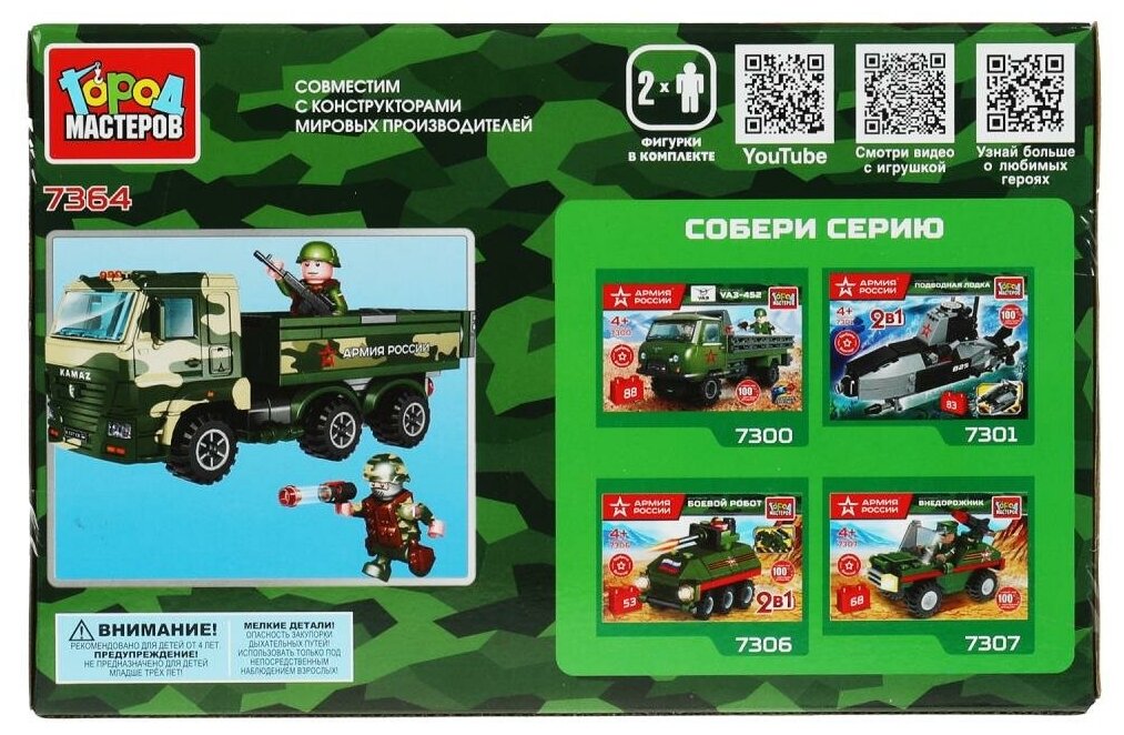 Детский конструктор ТМ "Город мастеров", 7364-KK, Армия России "Военный КАМАЗ с солдатами", 116 деталей