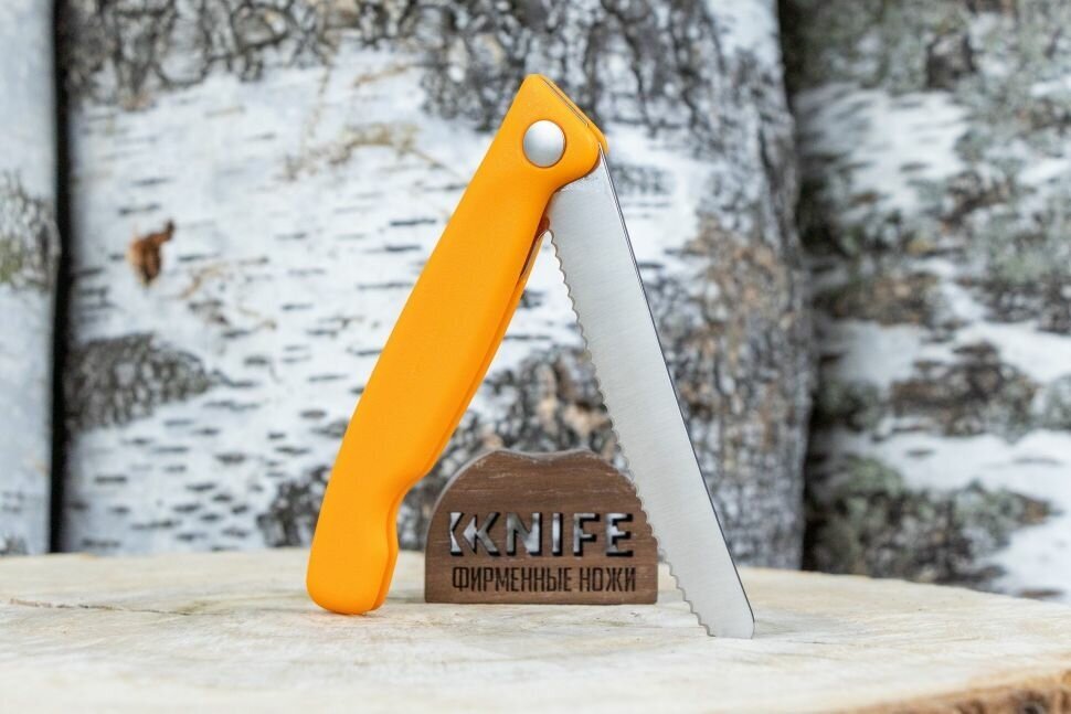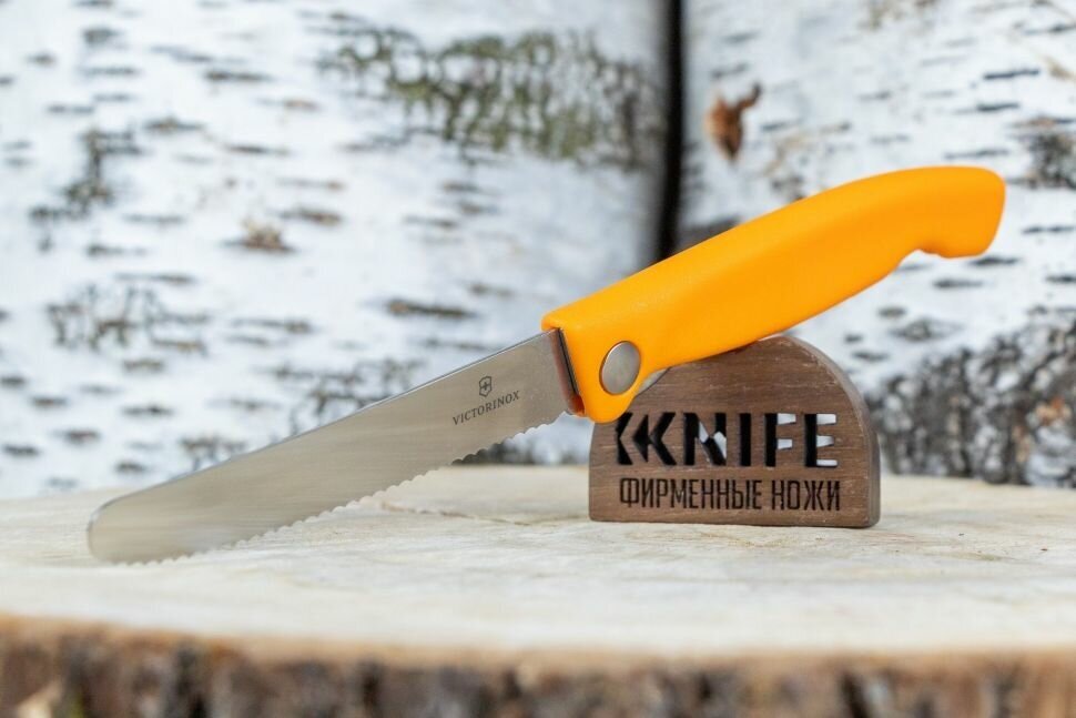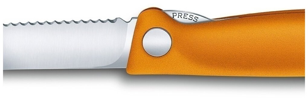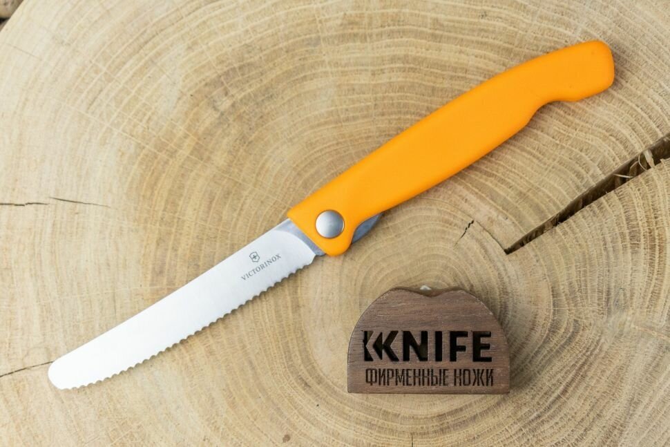 Нож для овощей VICTORINOX SwissClassic, складной, лезвие 11 см с волнистой кромкой, оранжевый