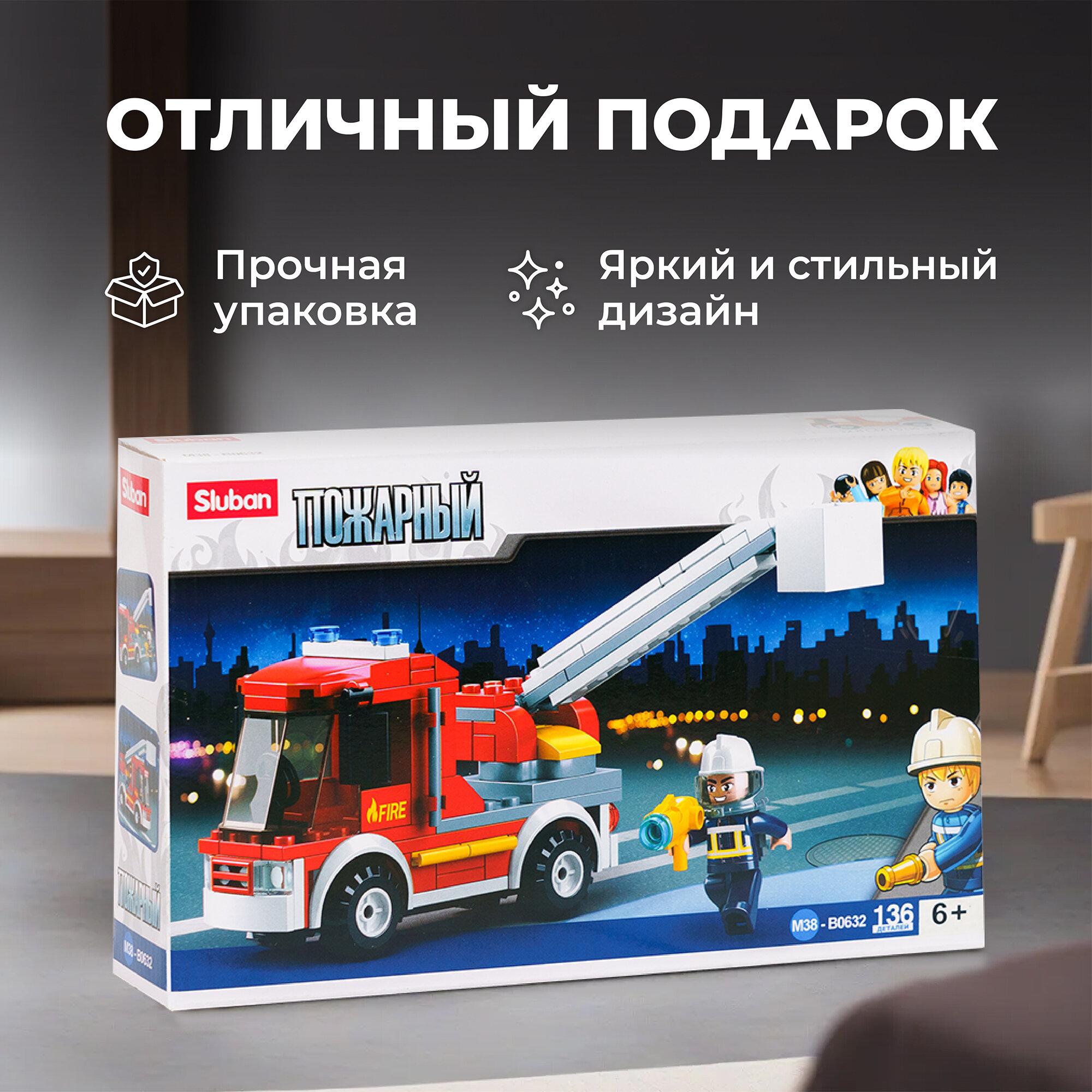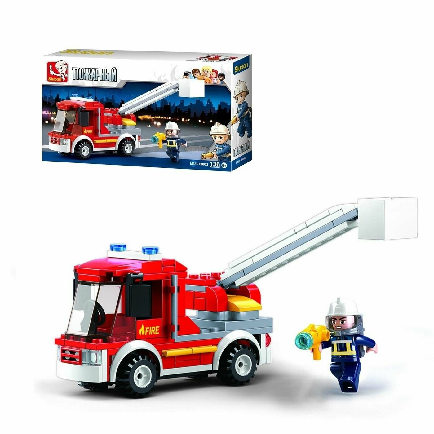 Конструктор пластмассовый пожарная машина с фигуркой, 136 деталей Sluban M38-B0632