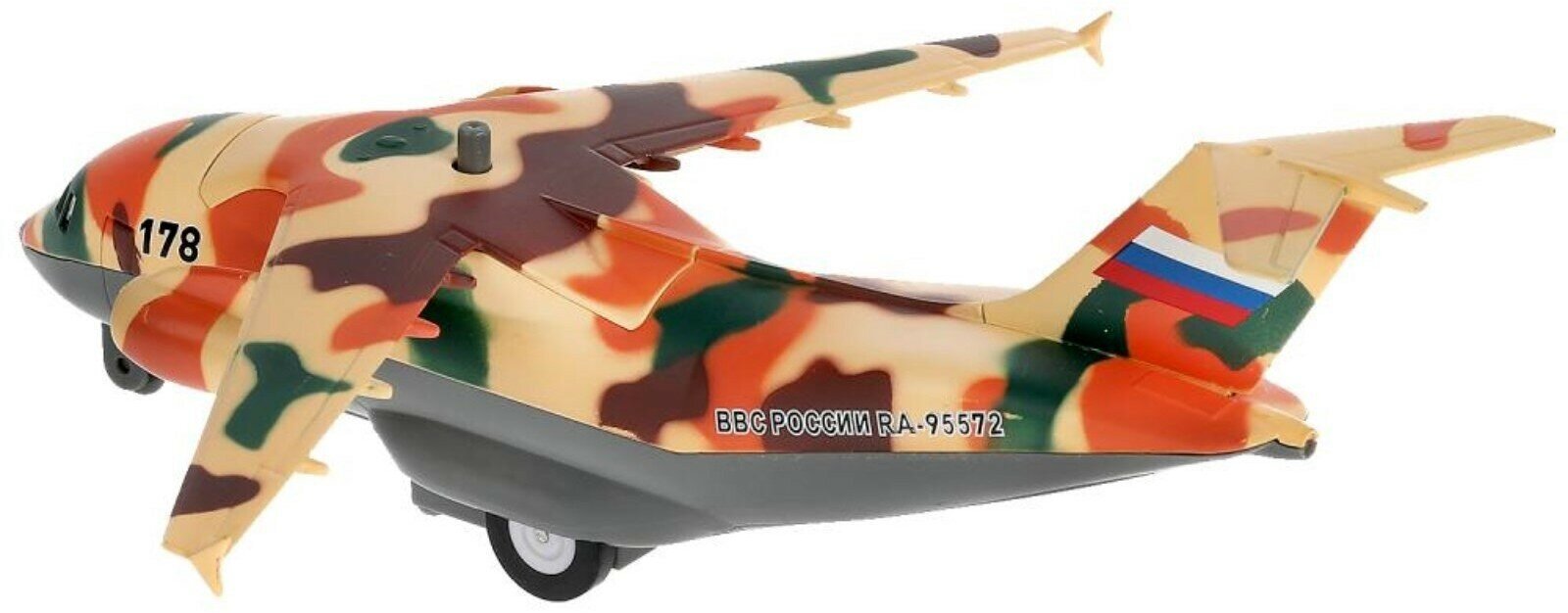 Модель металл самолет военно-транспортный 20 см, люк, подвижные детали, камуфляж. Технопарк / машинки и техника