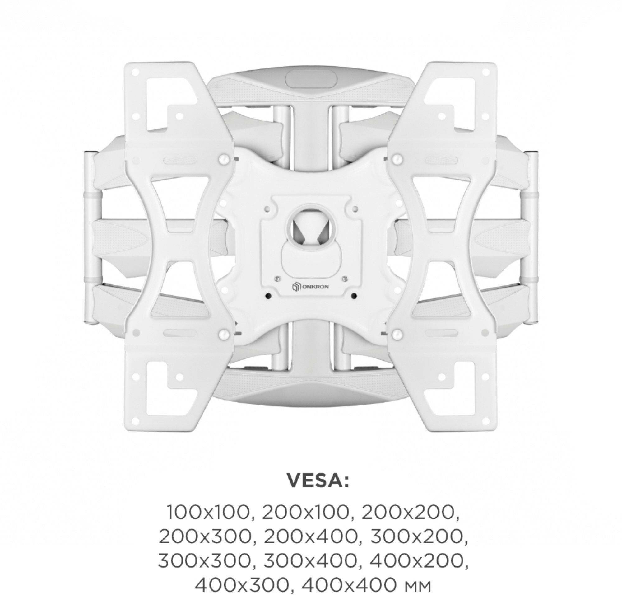 Кронштейн ONKRON/ 32-60 макс 400*400, наклон -5°/+8° поворот ±140° Макс нагрузка 45,5кг, от стены 49-491мм, белый