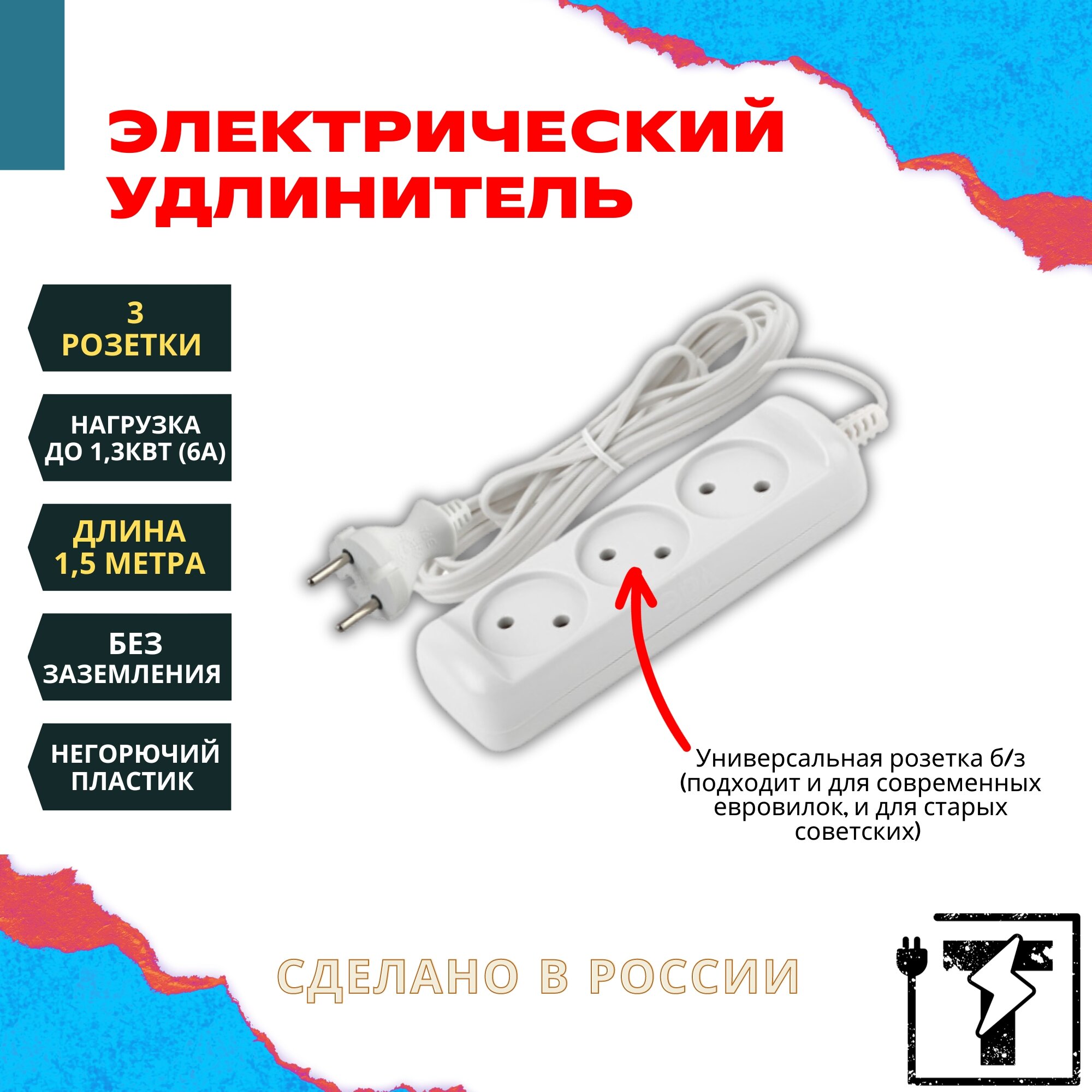 СохранитьУдлинитель электрический ЭРА, 3 гнезда, без заземления, 1,5 м, белый интересное:
