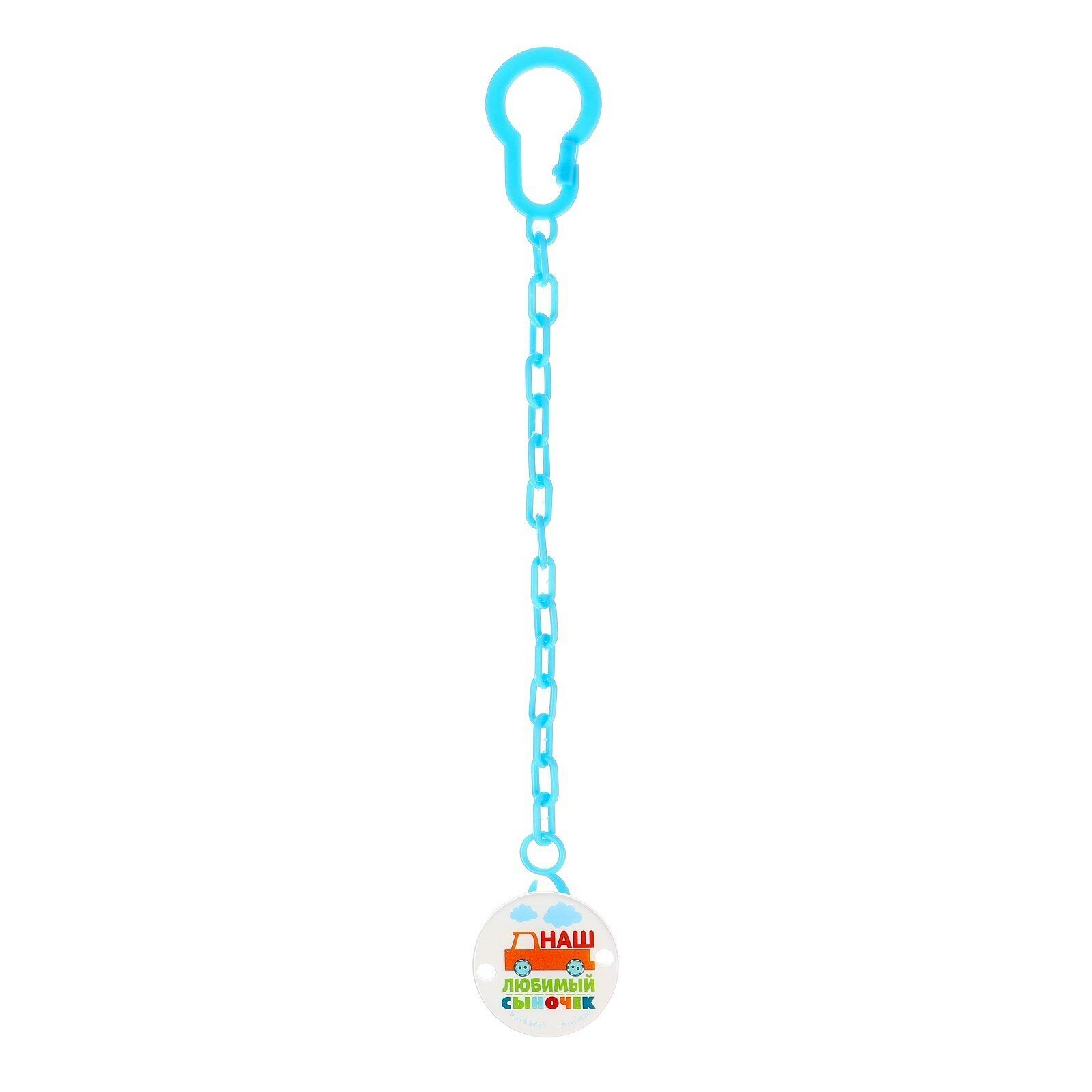 Mum&Baby Держатель для пустышки «Наш любимый сыночек», на цепочке, цвет синий