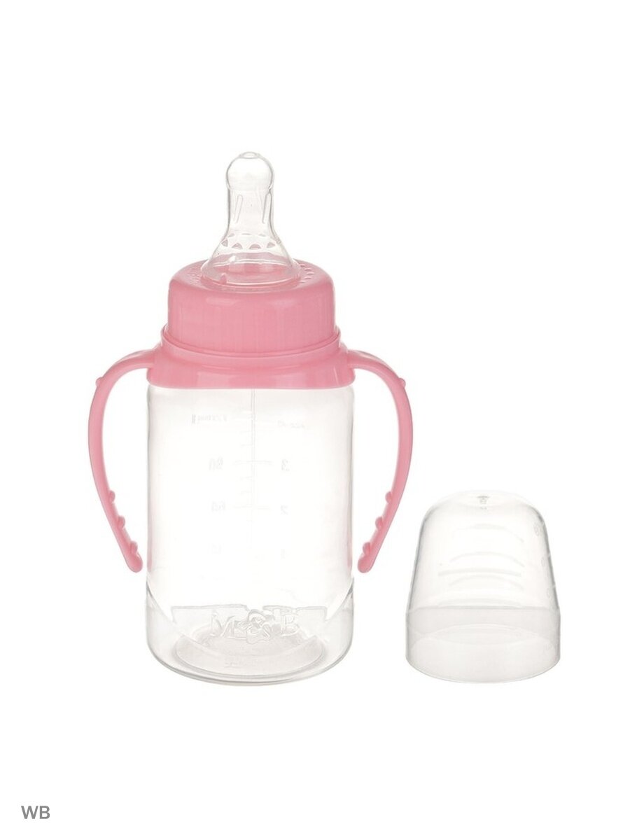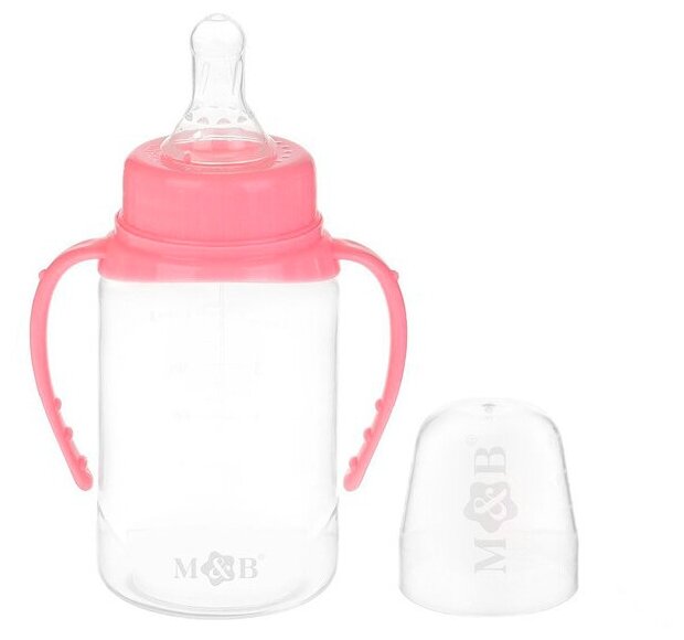Бутылочка для кормления M&B, классическое горло, с ручками, от 0 мес, 150 мл, розовый