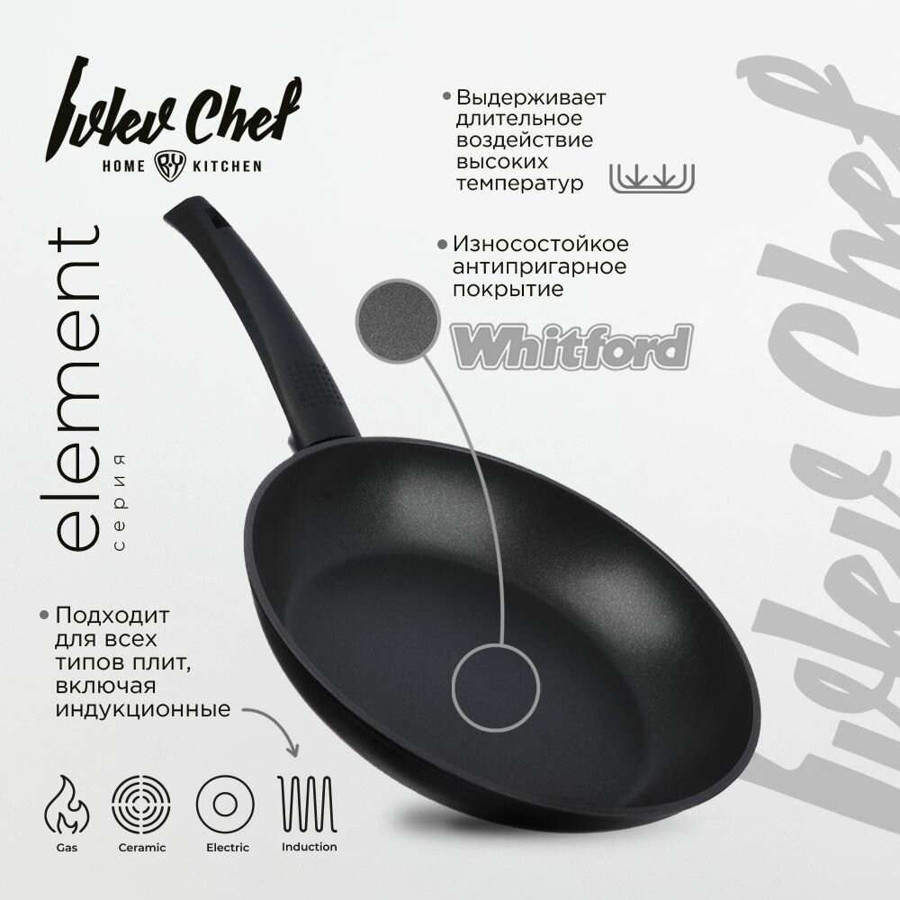 Ivlev Chef Element Сковорода литая d28см, антипригарное покрытие Whitford Xylan, индукция