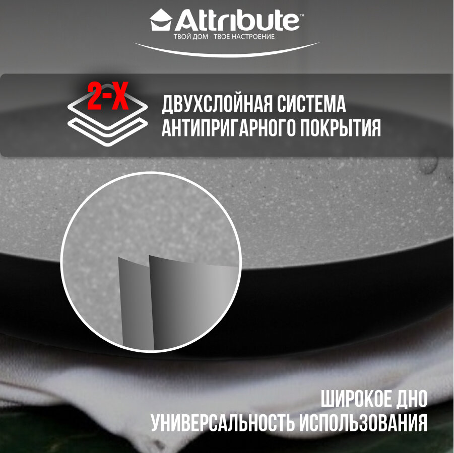 Сковорода антипригарная Attribute GREYSTONE 26 см, с антипригарным покрытием