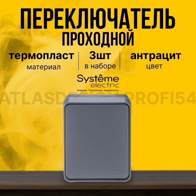 Переключатель 3 шт IP54 10А AtlasDesign Profi54 одноклавишный накладной Schneider Electric/Systeme Electric открытая установка антрацит