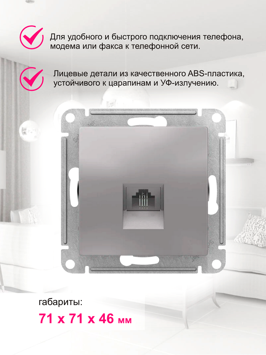 Розетка телефонная RJ11 AtlasDesign, цвет алюминий