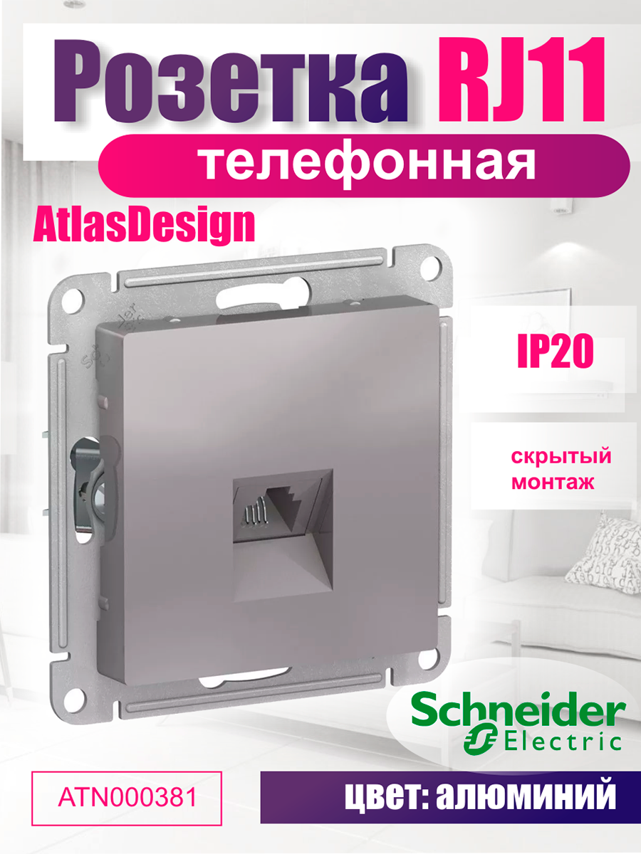 Розетка телефонная SCHNEIDER ELECTRIC ATLASDESIGN, механизм RJ11, алюминий