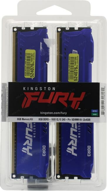 Kingston DDR3 8Gb KIT 2x4Gb 1600MHz pc-12800 Fury Beast Blue (kf316c10bk2/8) KF316C10BK2/8 .