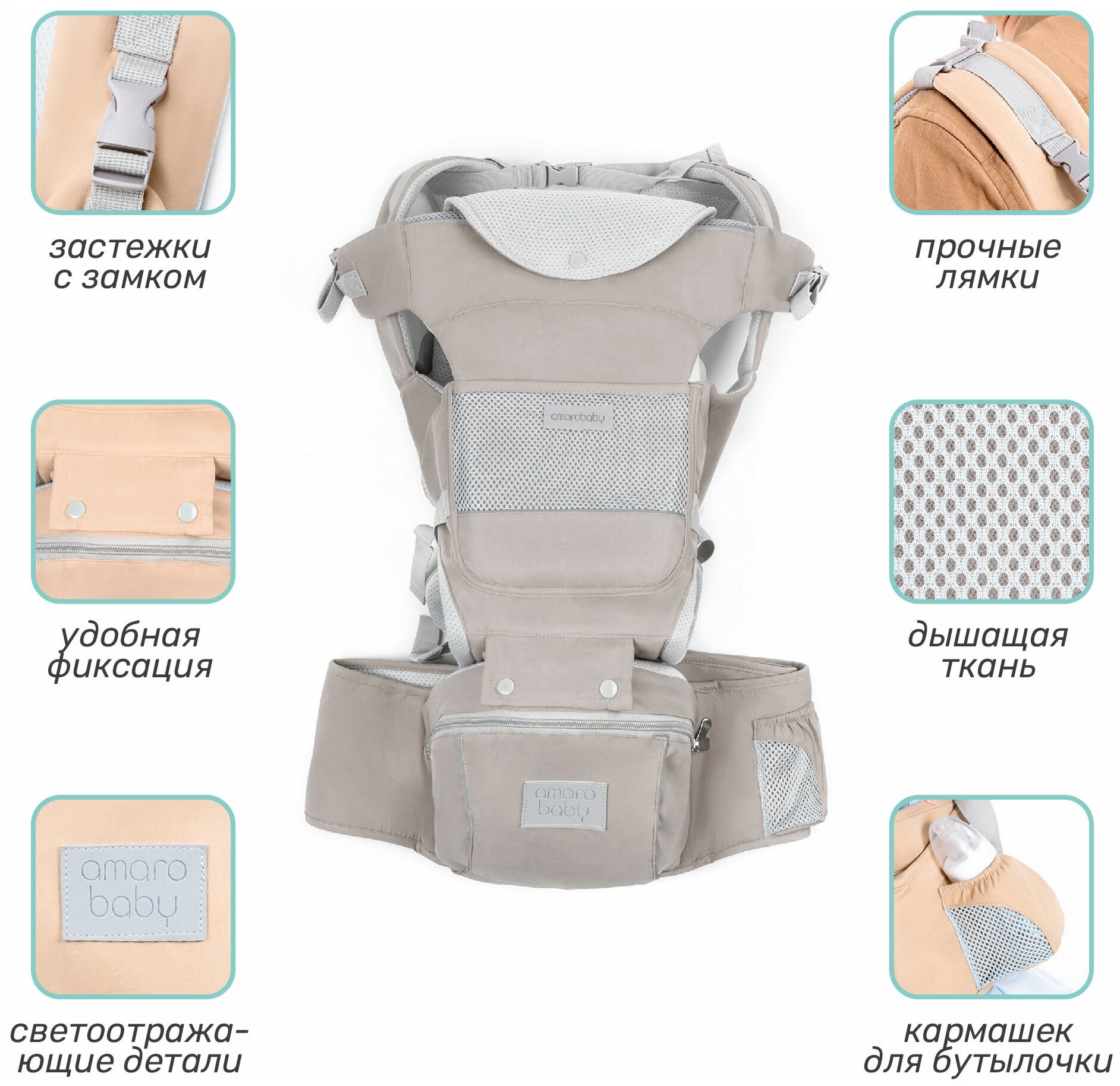 Эрго-рюкзак / Хипсит AMAROBABY CARRY, серый