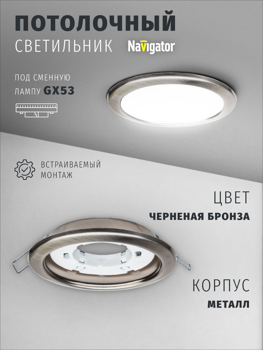 Купить Светильник встраиваемый Navigator 71 283 для ламп с цоколем GX53, черненая бронза