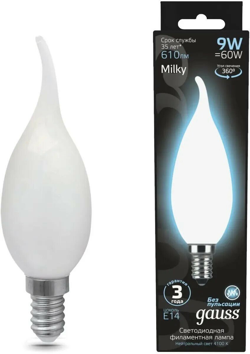 Лампа светодиодная Gauss Filament 104201209, 9Вт, цоколь E14, белый нейтральный, 4100К (10шт)