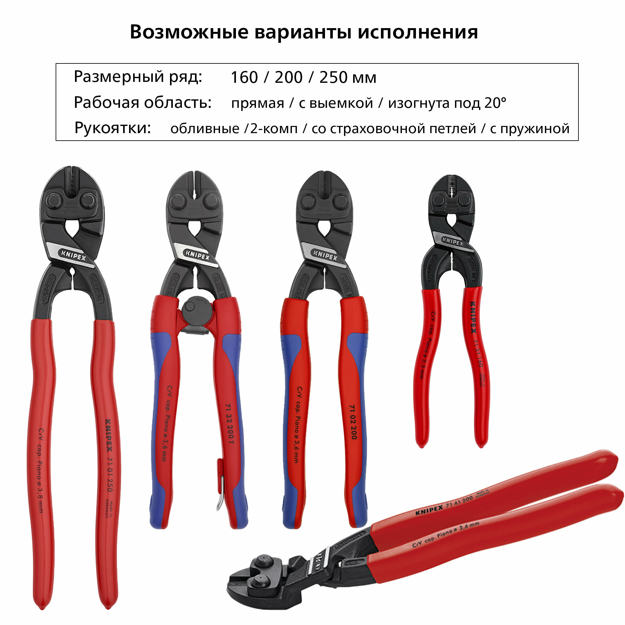 Ниже Вы можете прочитать отзывы на Болторез KNIPEX CoBolt компактный, голова 20 град., с выемкой на кромках, длина 200 мм KN-7141200, ознакомится с подробными характеристиками, посмотреть интересные обзоры и фотографии на Болторез KNIPEX CoBolt компактный, голова 20 град., с выемкой на кромках, длина 200 мм KN-7141200.