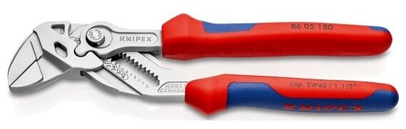 Клещи переставные-гаечный ключ, зев 40 мм, длина 180 мм, хром, 2-комп ручки, SB KNIPEX KN-8605180SB