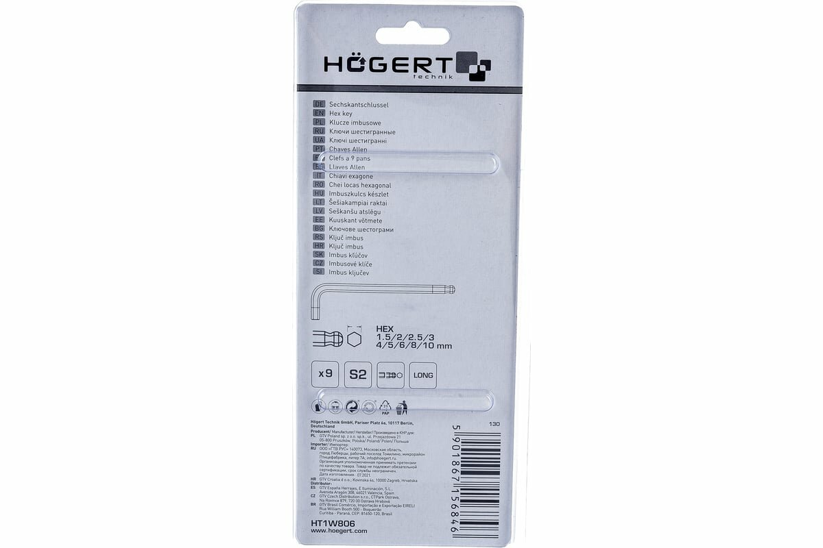 Набор удлиненных шестигранных ключей HOEGERT TECHNIK 9 шт. HT1W806
