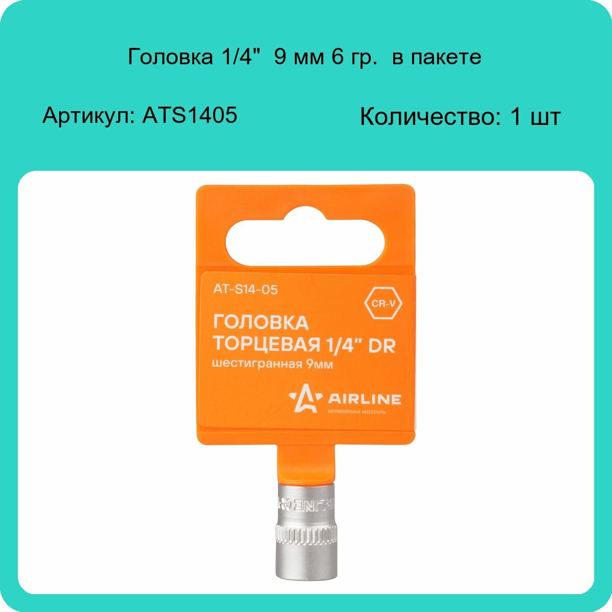 AIRLINE ATS1405 Головка торцевая 1/4 DR шестигранная 9мм в пакете (AT-S14-05)