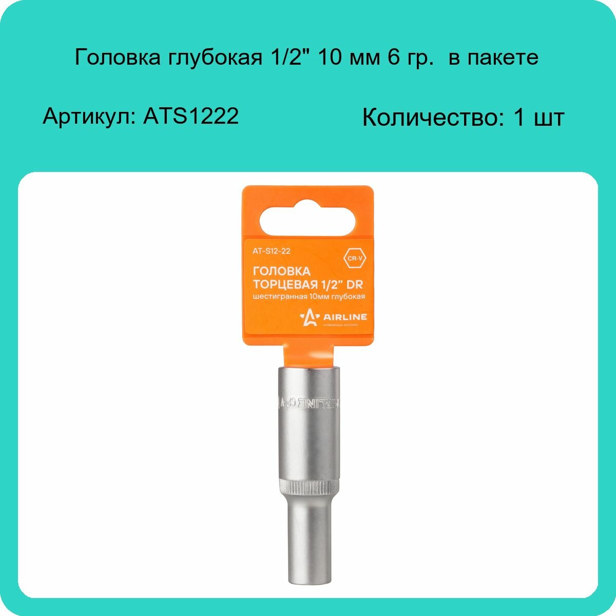 AIRLINE ATS1222 Головка торцевая 1/2 DR шестигранная 10мм глубокая в пакете (AT-S12-22)