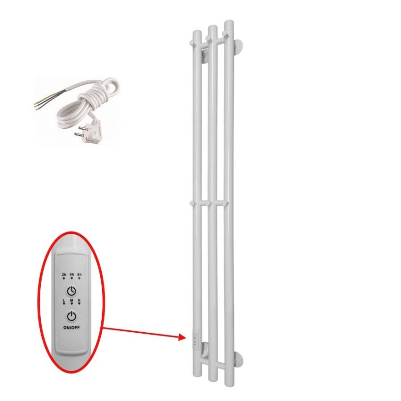 Полотенцесушитель Inaro Р120*6*12 профильный (18 ", СНШ, Белый RAL 9016 (мат), 2 секции по 3 вставки, Под скрытый монтаж. С таймером Ferrum, 3 крючка, Кабель с вилкой белый 90 см; 3 крючка по чертежу, Правое подкл.)