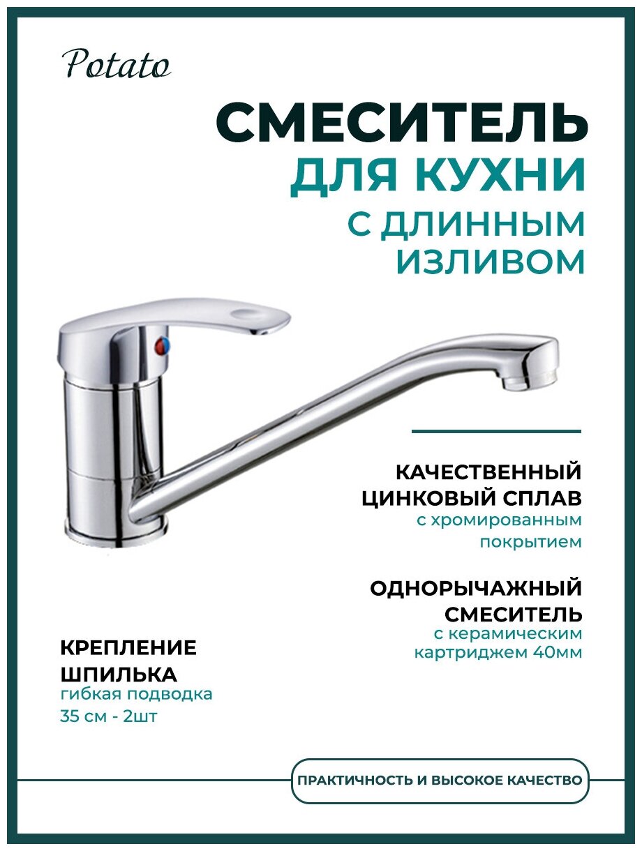 Potato Смеситель для кухни с длинным изливом P4203 интересное: