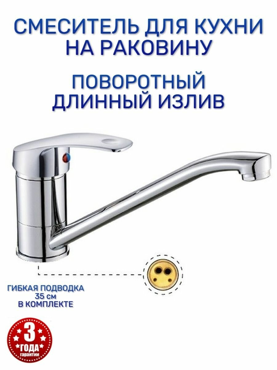Смеситель для кухни на раковину длинный поворотный кран