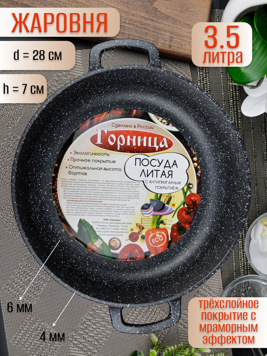 Жаровня Горница 3,5л с антипригарным покрытием 28см высота бортиков 7см без крышки